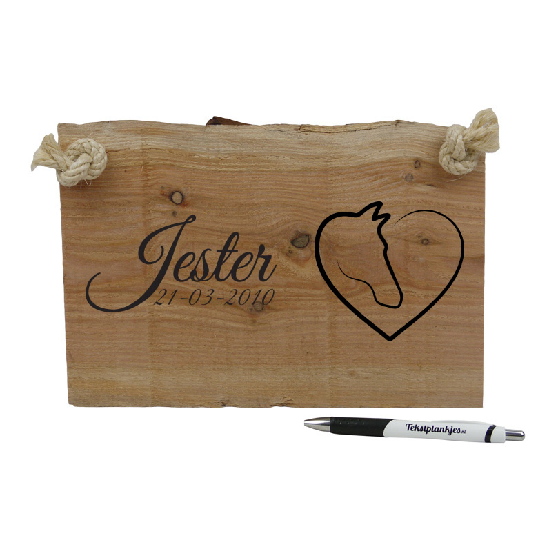 Zet de naam en geboortedatum van je paard op dit mooie naambordje. Jij hoeft alleen maar de naam van je paard in te vullen en zijn of haar geboortedatum en binnen 3 werkdagen heb jij dit mooie naambordje voor je paard al in huis!