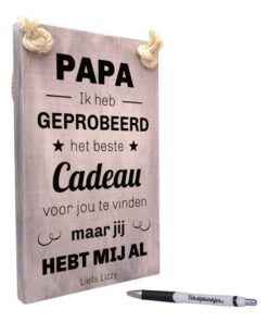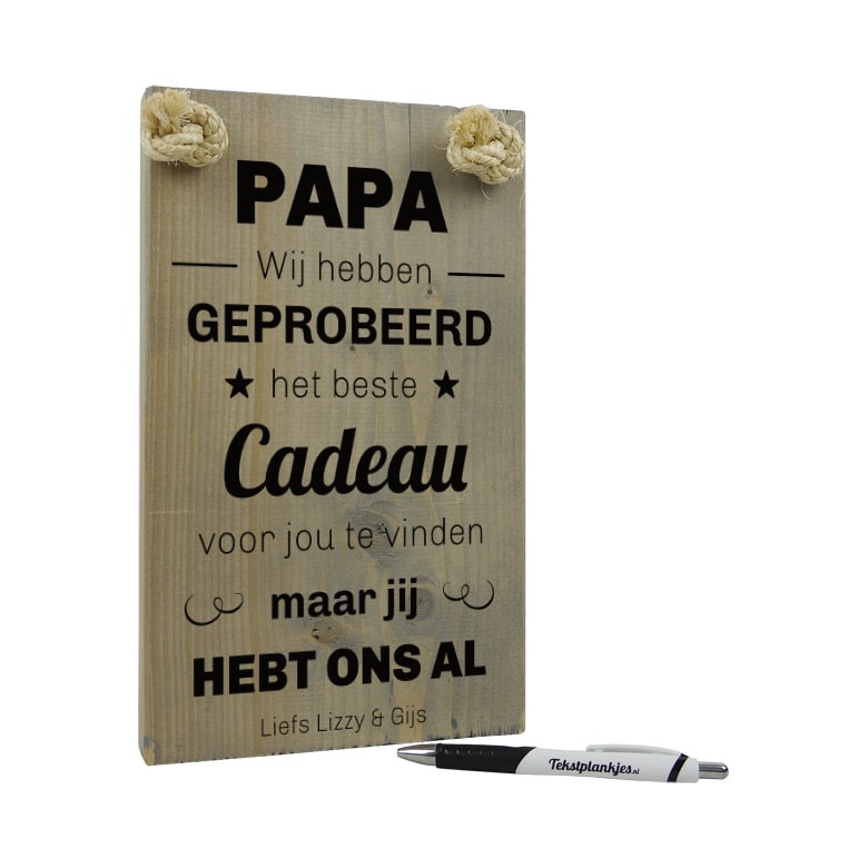 Het is altijd lastig om een leuk verjaardagscadeau of vaderdag cadeau voor je vader te vinden. Maar met dit tekstplankje ben je wél verzekerd van een uniek en zeker gewaardeerd cadeau. En om het een echt persoonlijk cadeau te maken is het mogelijk om zelf de onderste regel in te vullen!