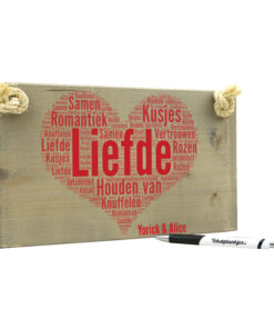 Op zoek naar een origineel maar toch persoonlijk cadeau voor je geliefde? Vul alleen jullie namen in en je hebt hem binnen 3 werkdagen al in huis. Deze tekst op hout is ideaal als valentijnscadeau, verjaardagscadeau of om hem/haar gewoon eens te verrassen.