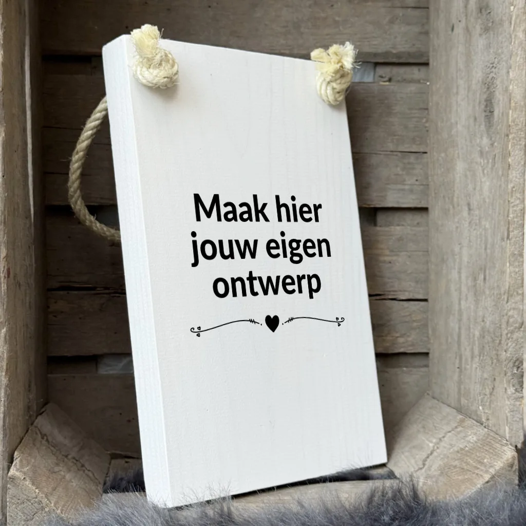 Ontwerp je eigen tekstplankje wit steigerhout staand