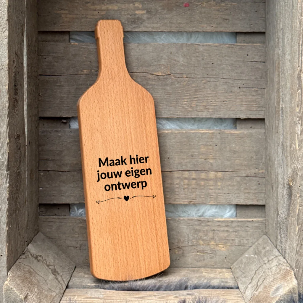 Serveerplank beuken eigen ontwerp Wijnfles
